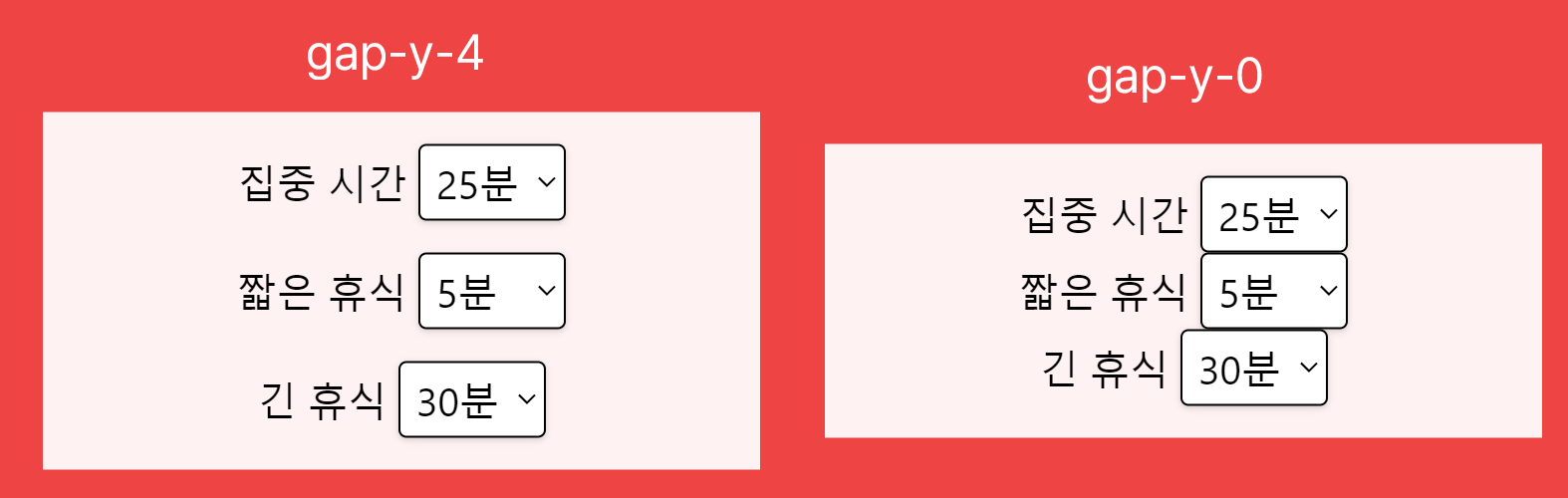 - gap-y-4 : 자식요소들의 세로 여백을 지정합니다. 마찬가지로 아래 화면을 참고해 주세요.