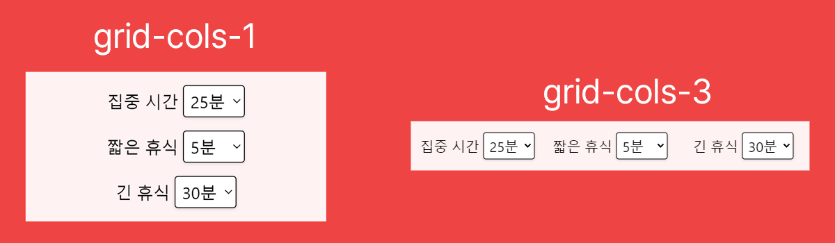 - grid-cols-1 : 가로 영역을 몇 분할로 표시할 지를 설정합니다. 1로 설정할 경우 div를 세로로 분할합니다.